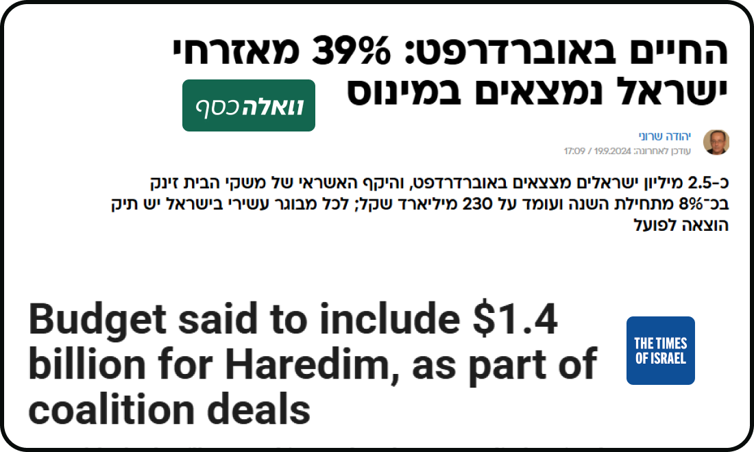 המציאות הכלכלית בישראל - 2.5 מיליון במינוס!